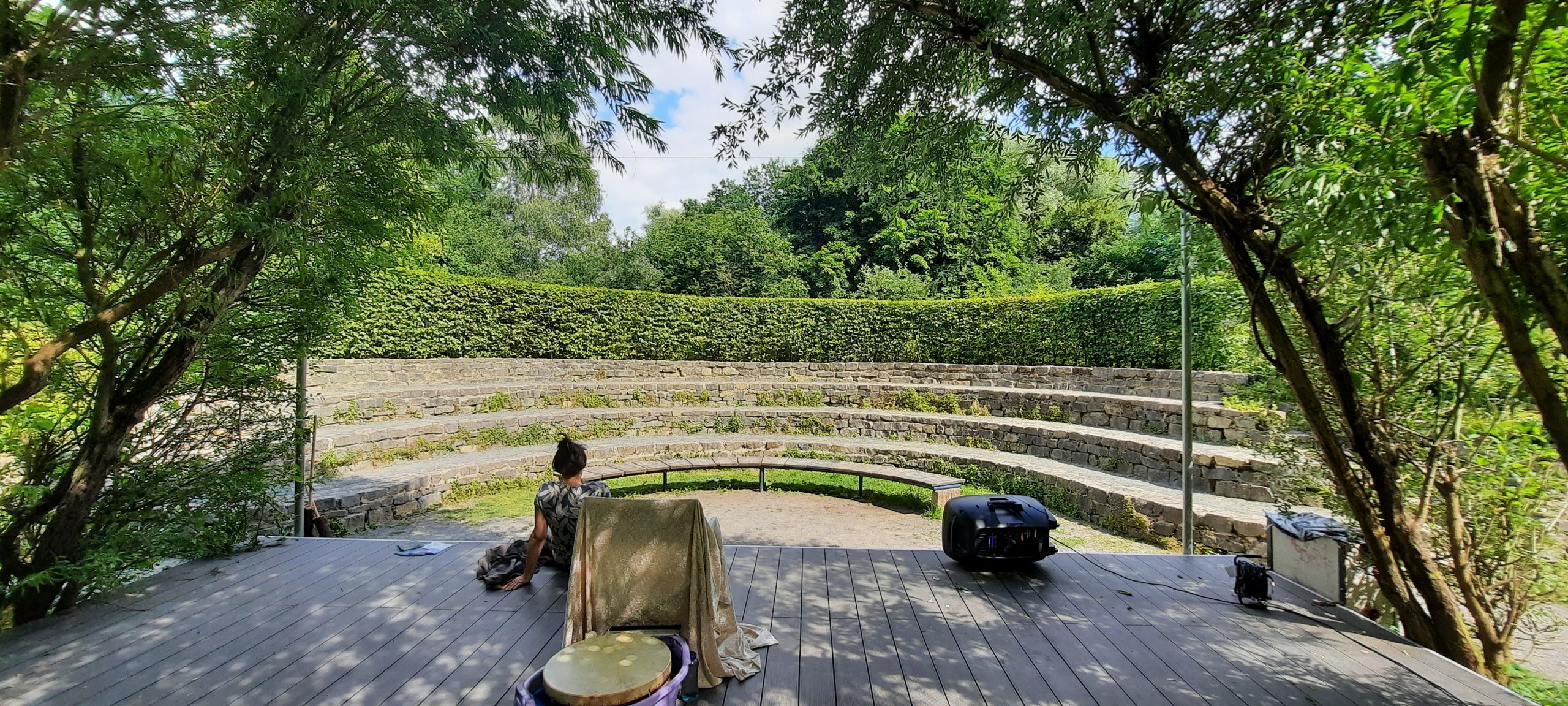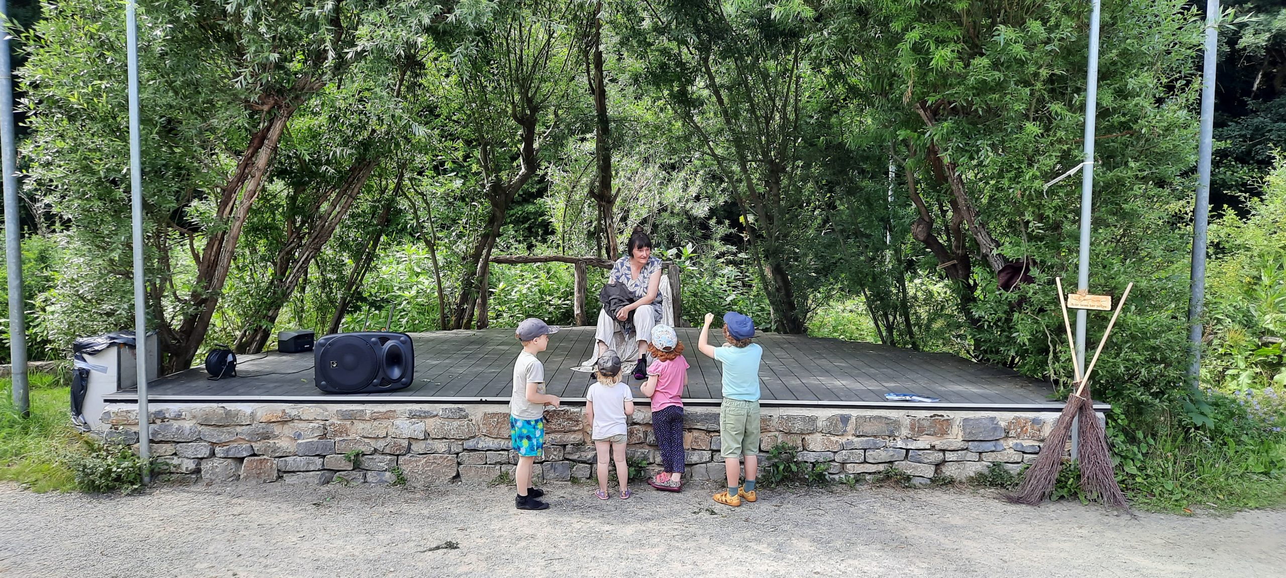 Bei schönstem Wetter konnten Jochen Hettig und ich einen märchenhaften, musikalischen Erzählzauber auf der Naturbühne der Heerser Mühle gestalten. Mit der Veeh-Harfe und Geschichten über Kunstwerke und ihre Künstler, über Flöten, die Geheimnisse verraten, und über magische Glöckchen, die Menschen zum Verschwinden bringen.