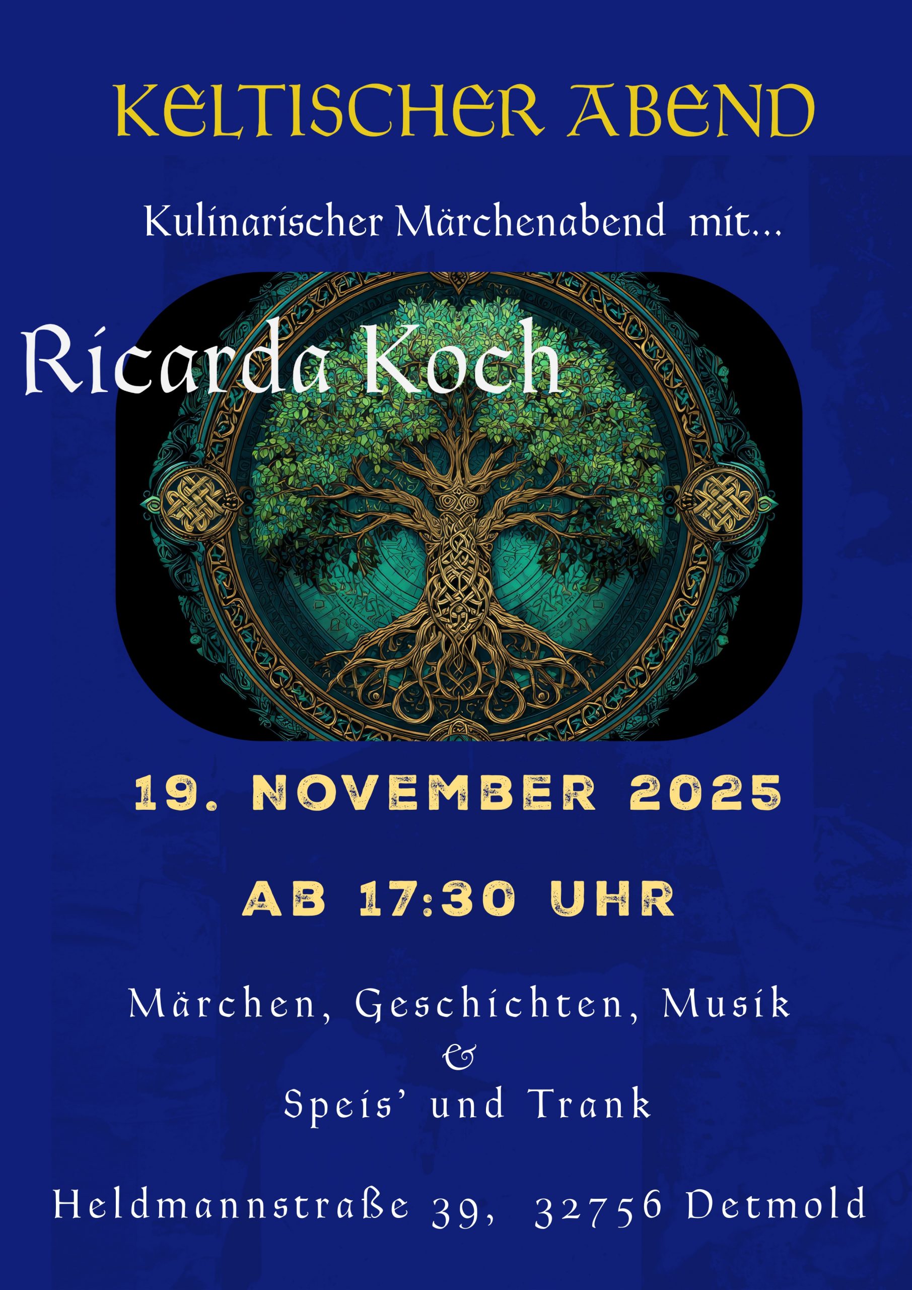 Es war ein vorzüglicher Gaumen, Ohren- und Herzensschmaus, der anlässlich des Kulinarischen Erzählbands genossen werden konnte. Erneut durfte ich eine schöne musikalische Erzählveranstaltung in der Heldmannstraße durchführen. Dieses Mal gab es einen Erzählkunstabend mit Keltischen Märchen und Geschichten. Die irische Musik, die mittels der Veeh Harfe erklang, hat das Motto des Abends in schöner Weise unterstrichen .